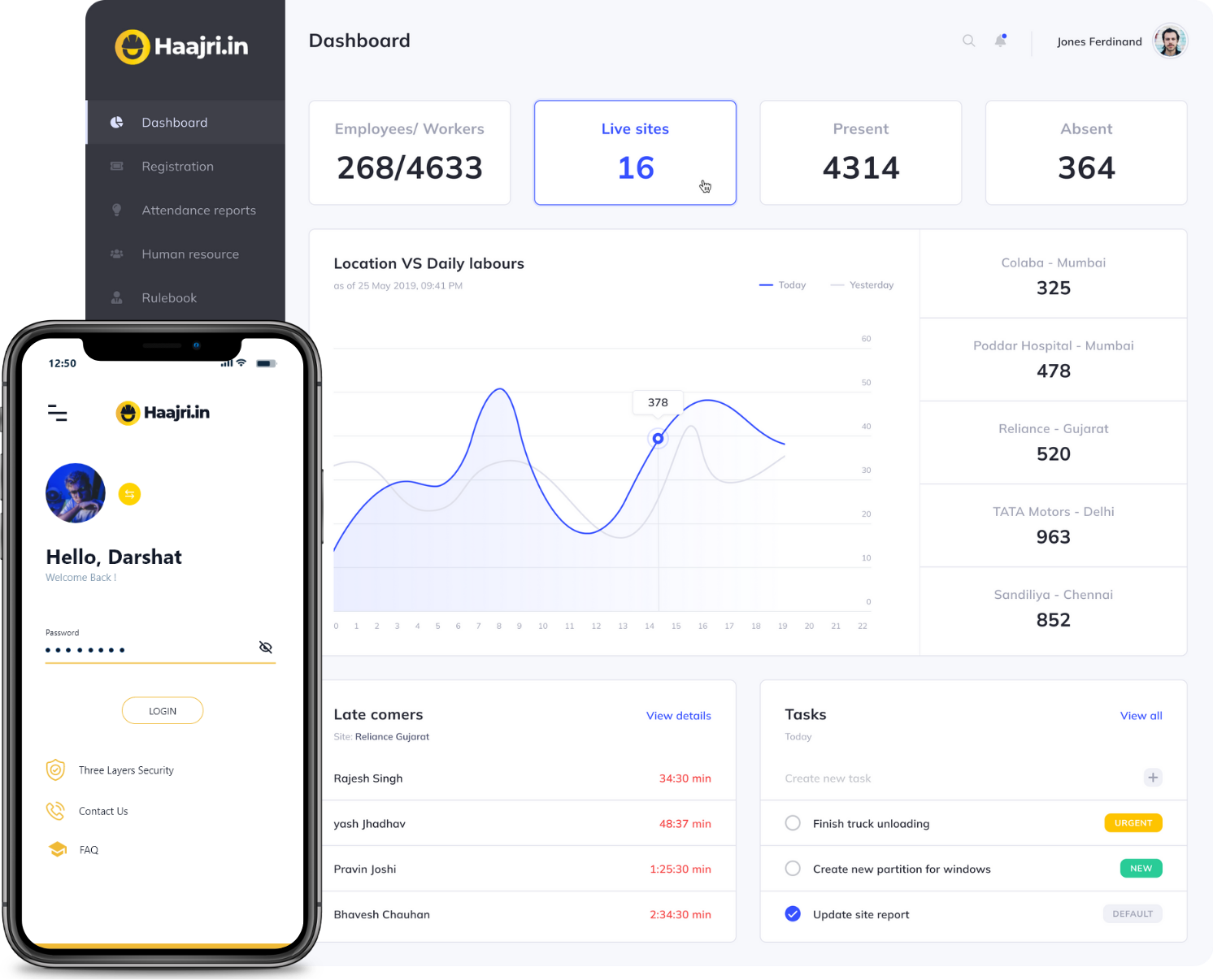 Smart shift scheduling, vendor compliance, and one-click reports keep sites disciplined; daily workers onboard in minutes even offline.